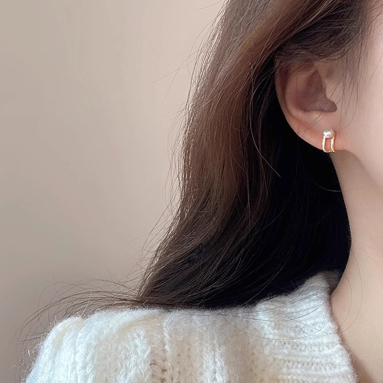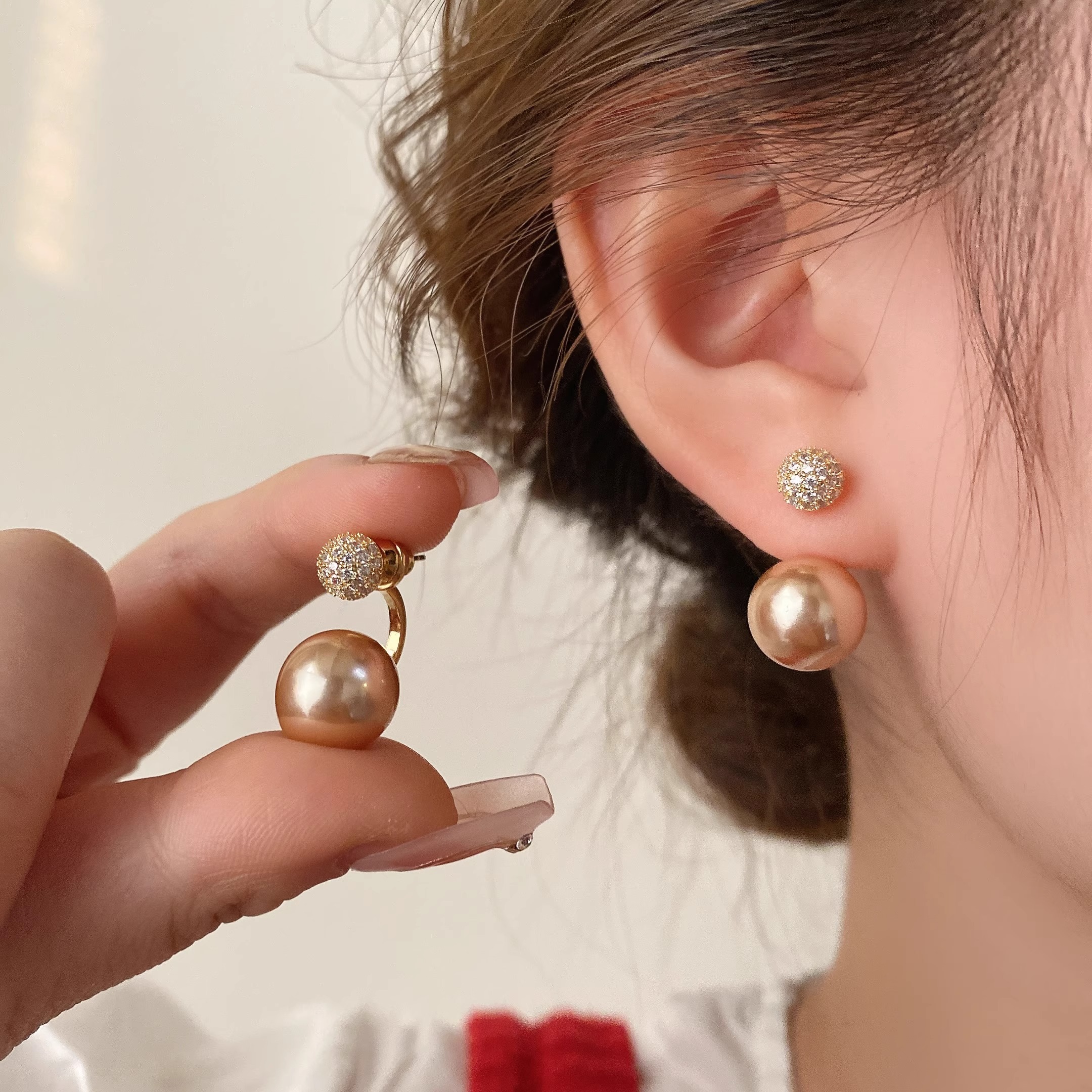 日韩香槟金珍珠耳钉女纯银耳夹无耳洞耳环2023新款爆款高级感耳饰