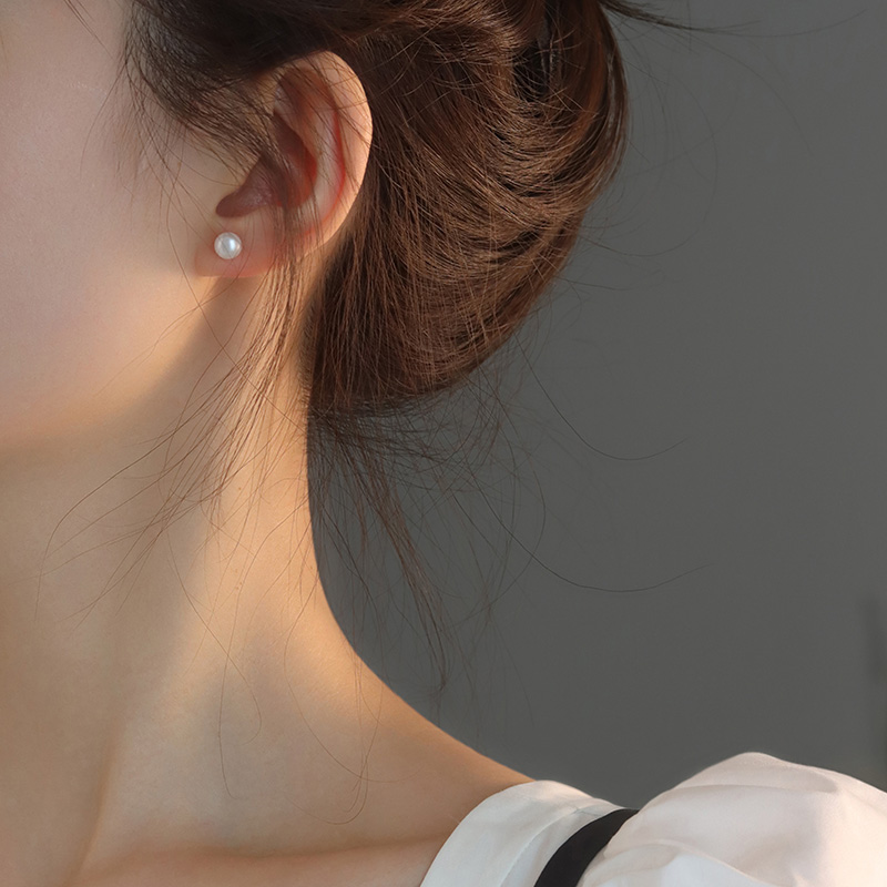 【迷度】925纯银天然强光珍珠耳钉养耳洞睡觉不用摘简约小巧百搭