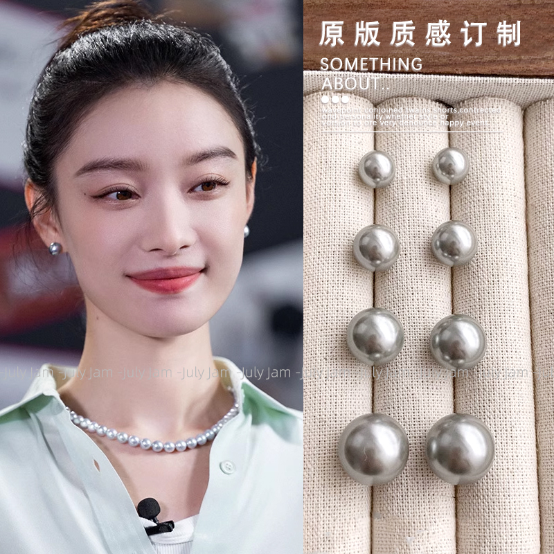Mona同款大珍珠耳钉女纯银法式复古棉花耳环2023年新款潮秋冬耳饰