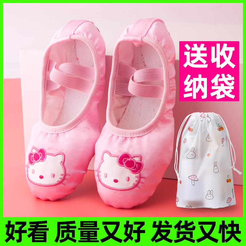 儿童舞蹈鞋女童芭蕾舞鞋缎面中国舞软底练功鞋猫爪鞋幼儿宝宝专用