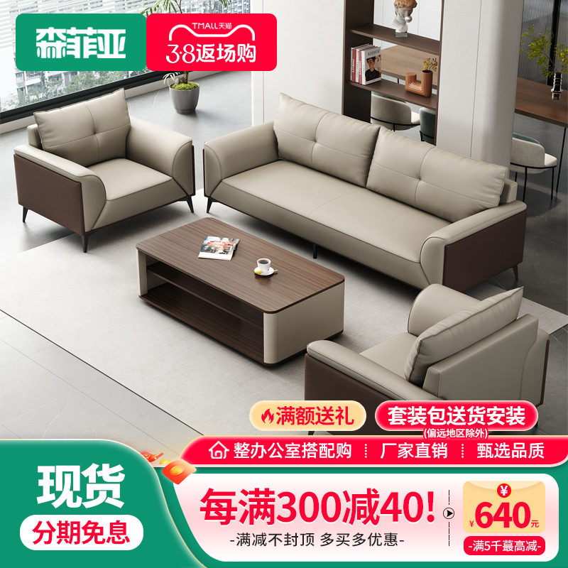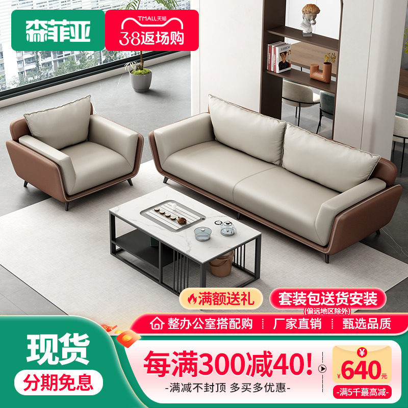 办公室沙发商务简约现代会客厅接待高档休闲真皮办公沙发茶几组合