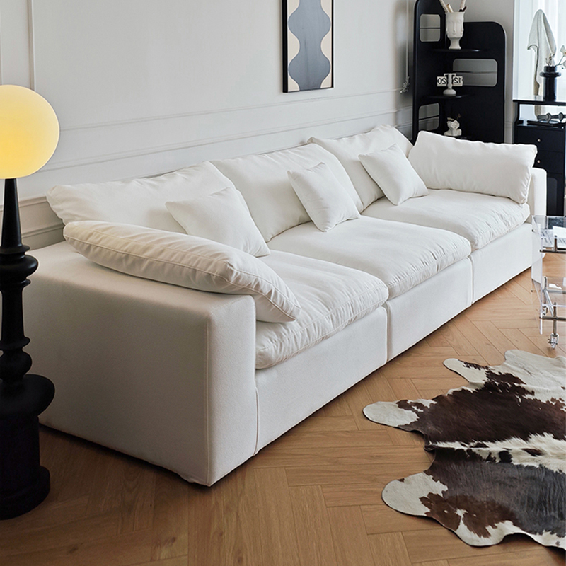 高级棉麻沙发直排式白色奶油系软云朵三人座亚麻布艺客厅组合家用