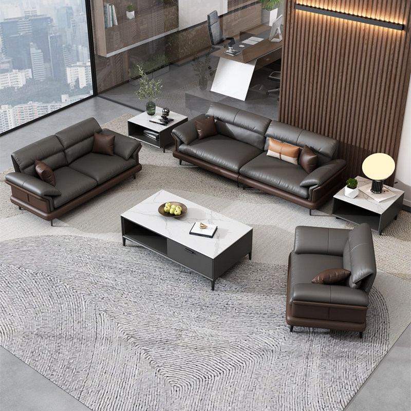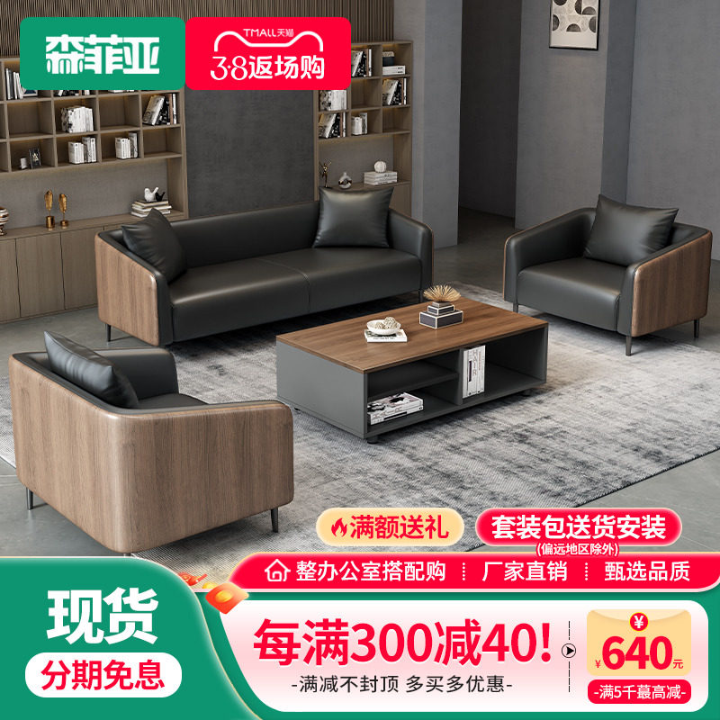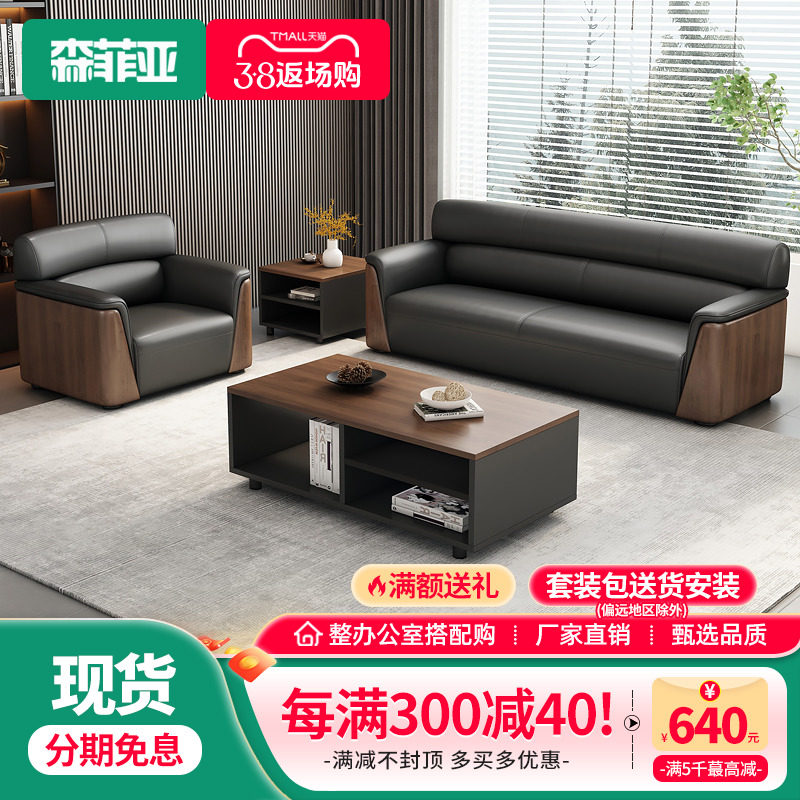办公室沙发茶几组合简约总裁老板室办公会客前台接待真皮商务沙发