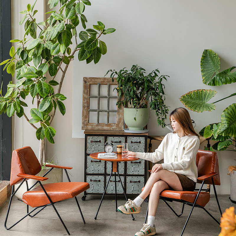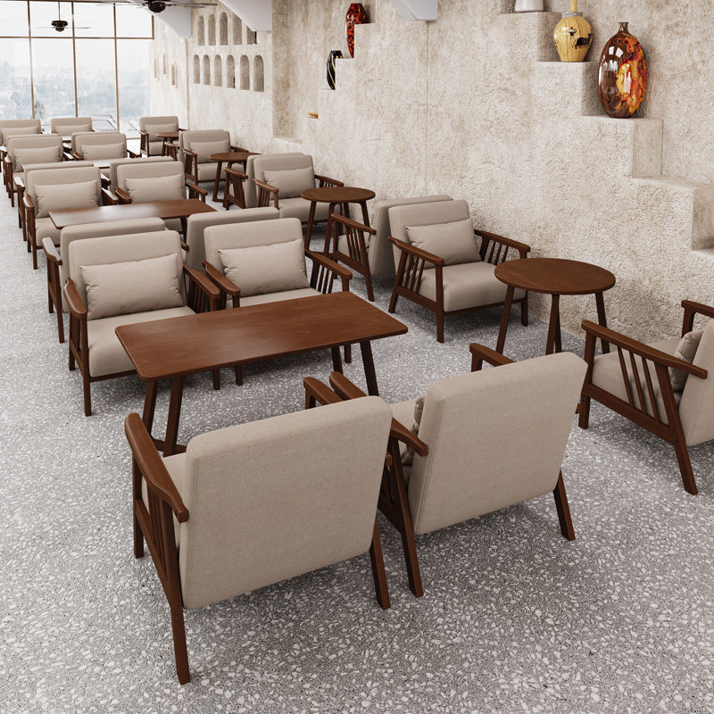 实木复古咖啡厅沙发 餐厅桌椅网红奶茶店桌椅组合休闲椅咖啡桌