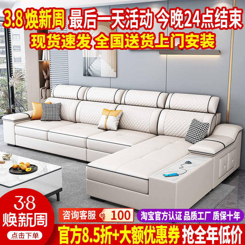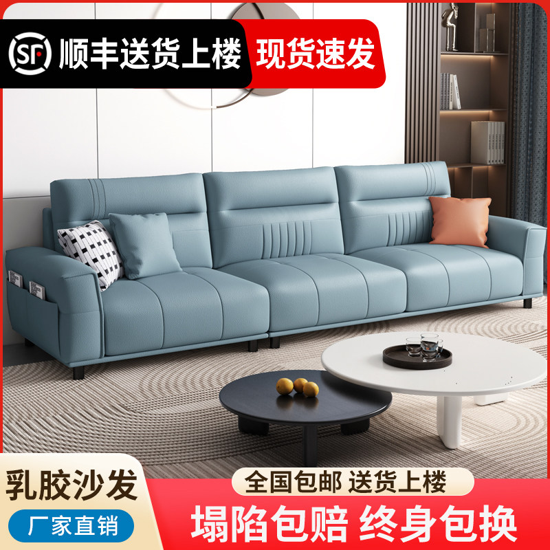 简约现代新款猫抓皮真皮乳胶沙发客厅小户型组合直排三人位四人位