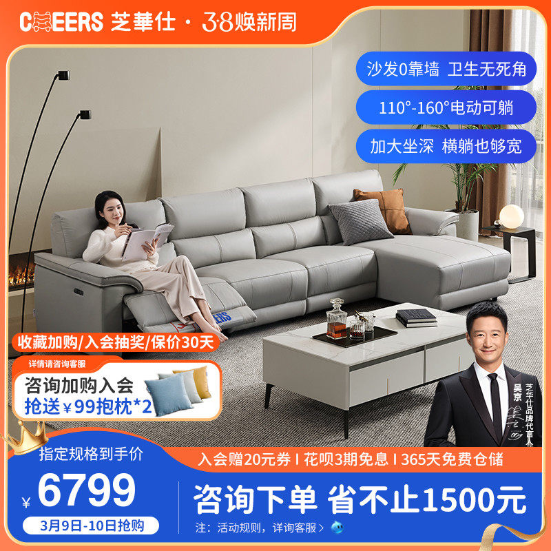 芝华仕头等舱现代简约真皮电动功能沙发皮艺零靠墙客厅组合30196