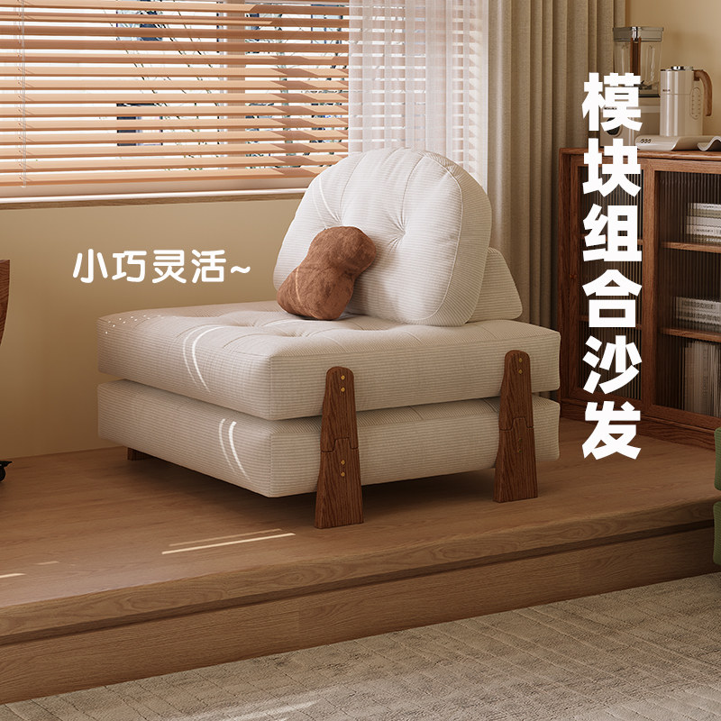 单人沙发豆腐块模块奶油风布艺客厅小户型可折叠组合休闲懒人沙发
