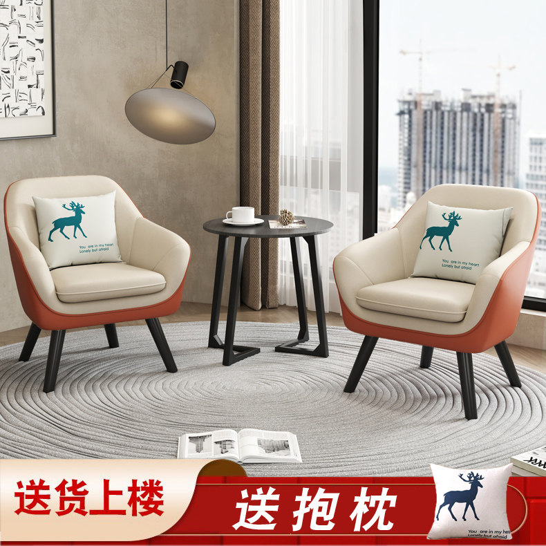 简约现代办公室商务会客酒店休息区接待洽谈单人小沙发椅茶几组合