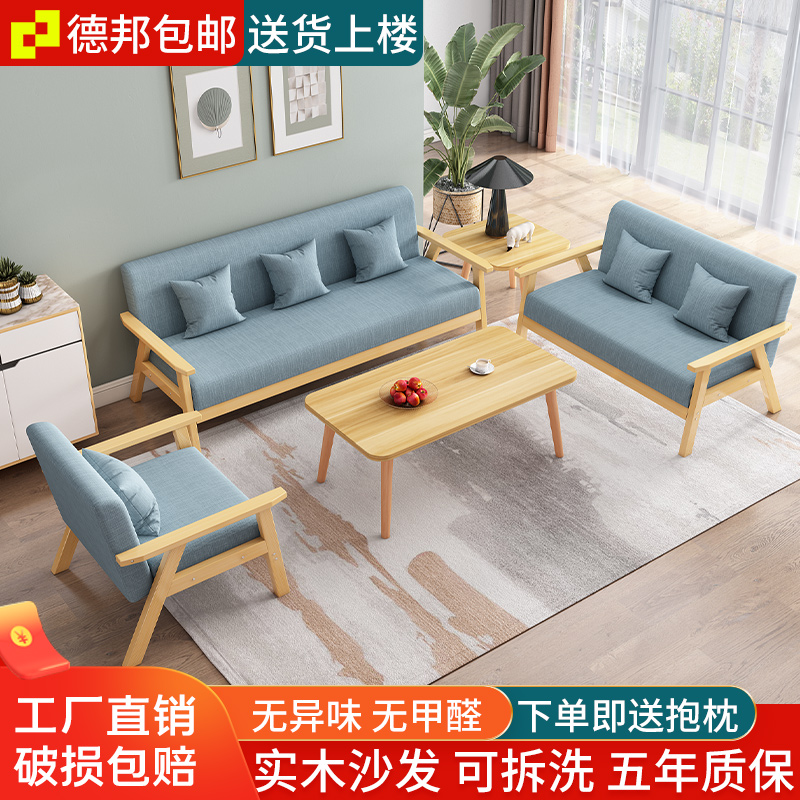 实木沙发茶几组合套装小户型客厅现代简约布艺三人办公椅子出租房