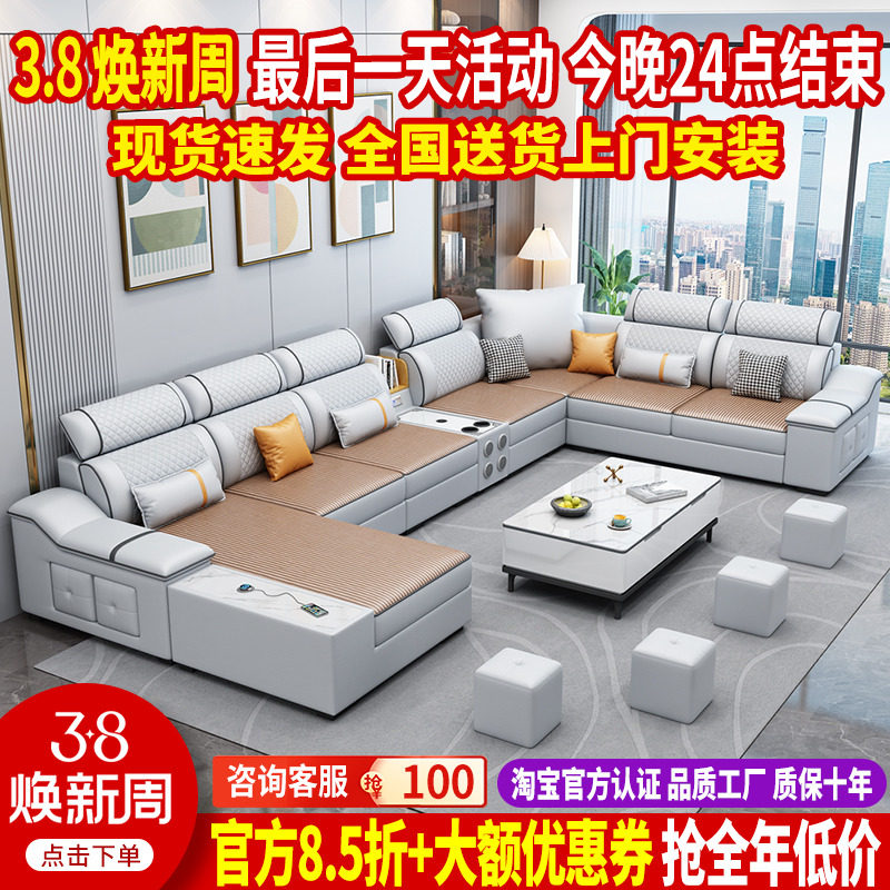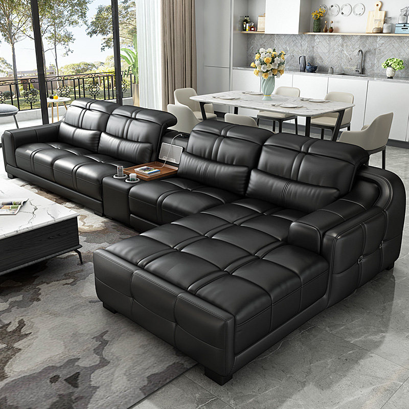 真皮沙发头层牛皮简约现代客厅大小户型组合套装轻奢智能黑色沙发