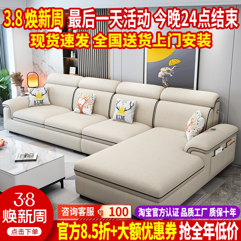 简约现代北欧布艺沙发客厅大小户型拆洗贵妃转角组合乳胶冬夏两用