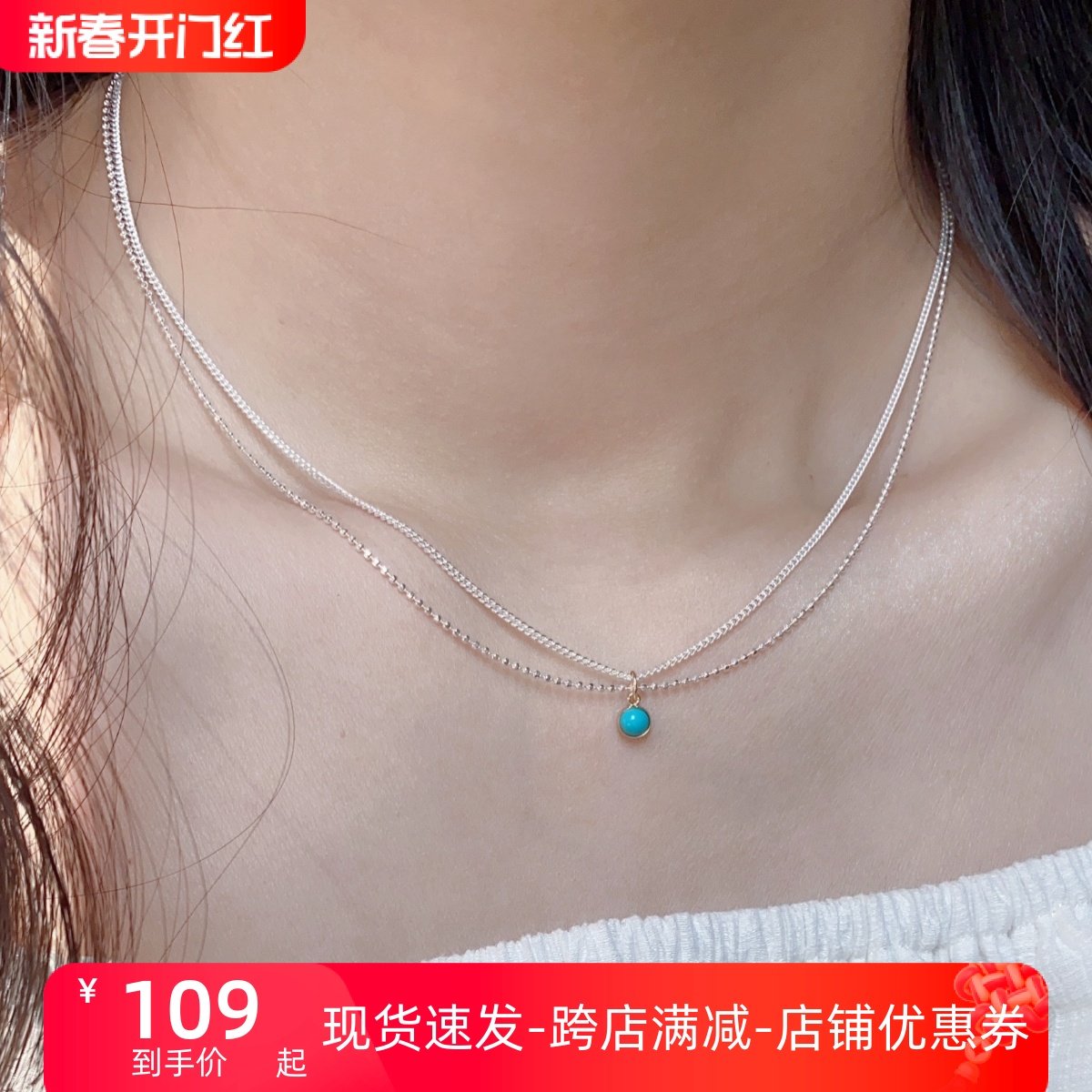 定制《Taitlynn的早餐》925纯银绿松石双层项链珍珠锁骨链复古