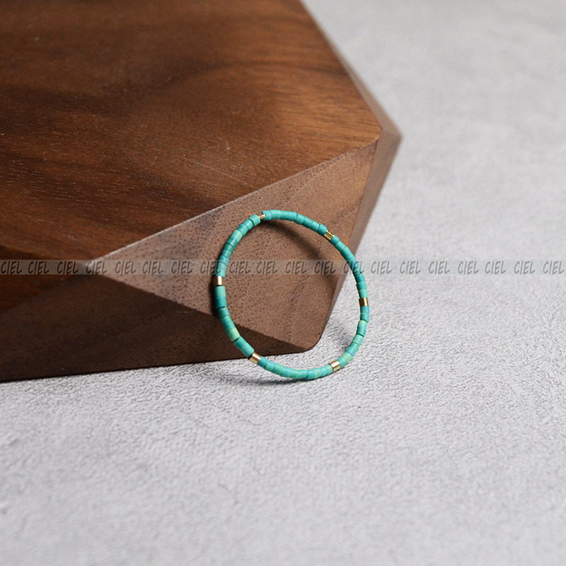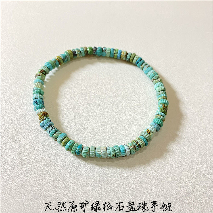 极细2mm天然原矿石无优化小绿松石手链女单圈手串14k包金文玩超细