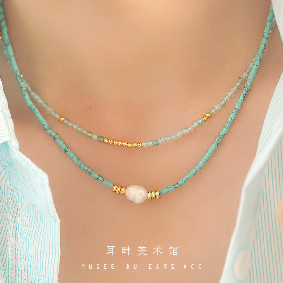 A绿松石巴洛克珍珠叠戴项链锁骨链女法式轻奢小众设计闺蜜礼物仙