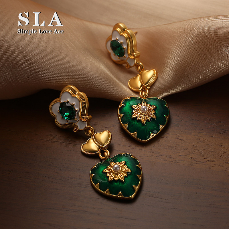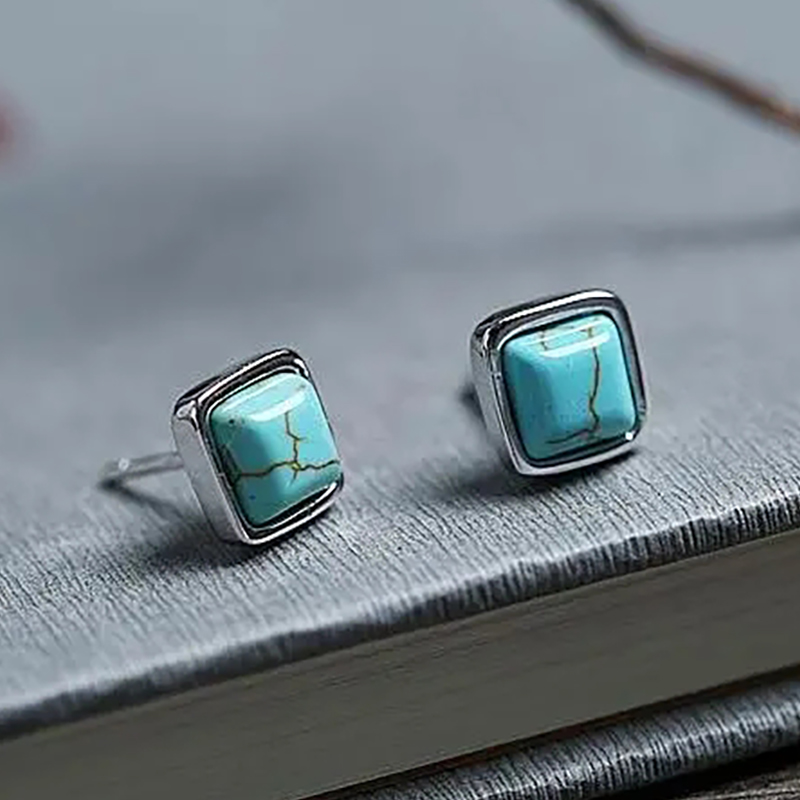 摩典轻奢高级绿松石耳钉女时尚精致简约气质网红爆款S925纯银耳饰