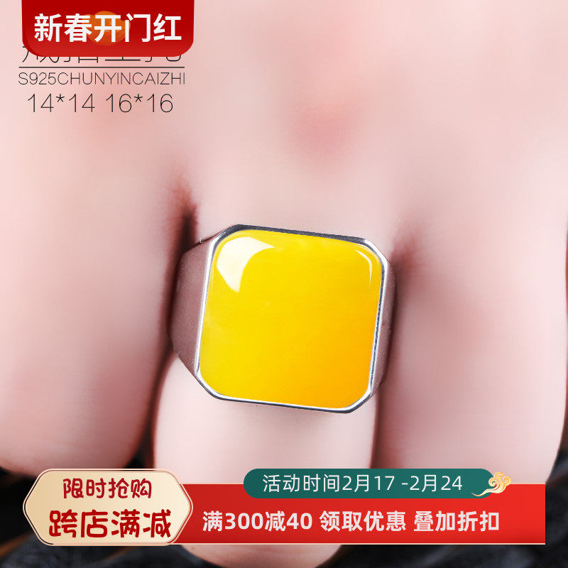 S925纯银戒指空托 diy镶嵌蜜蜡绿松石琥珀南红戒面开口男士方戒托