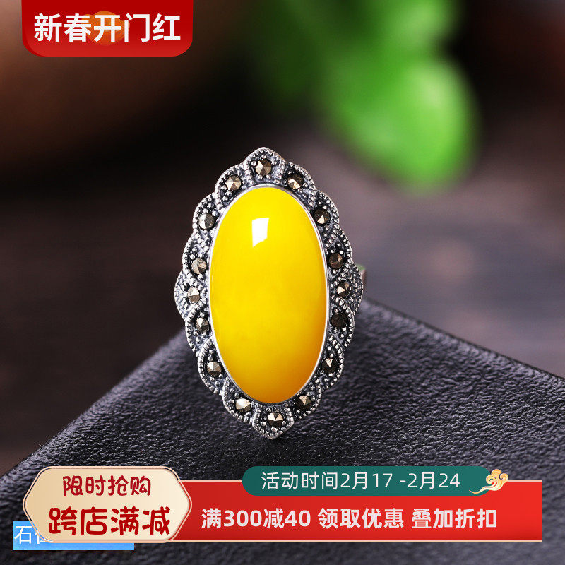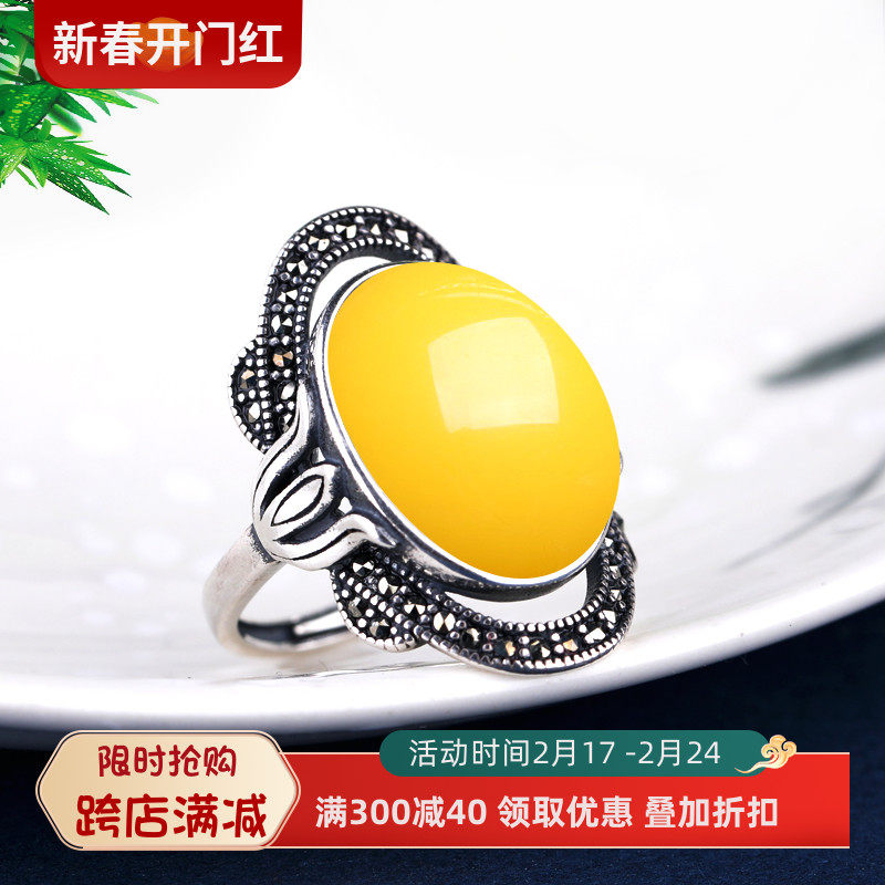 S925纯银戒指空托复古色戒指托镶嵌蜜蜡琥珀绿松石女款戒托 10*15