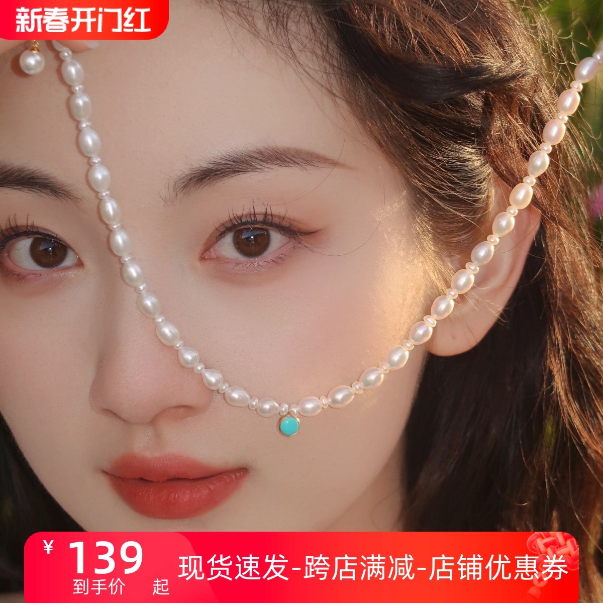 希娅原创《鸢尾》天然珍珠绿松石项链吊坠小米珠锁骨链珍珠项链女