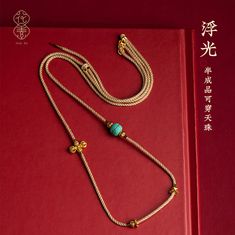高端横穿天珠挂绳女款DIY半成品绿松石手工编绳项链万能锁骨链绳