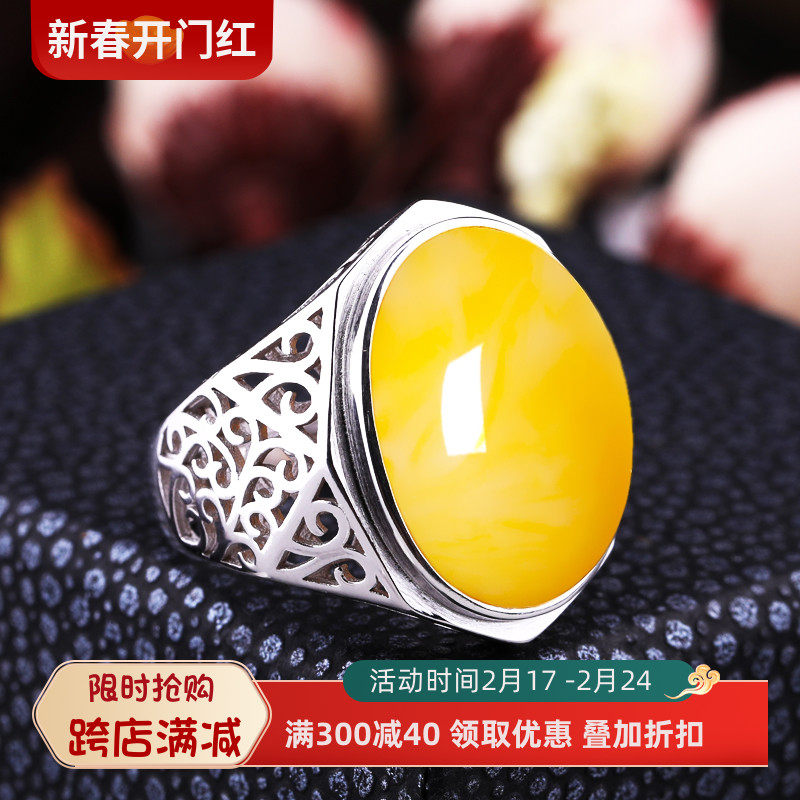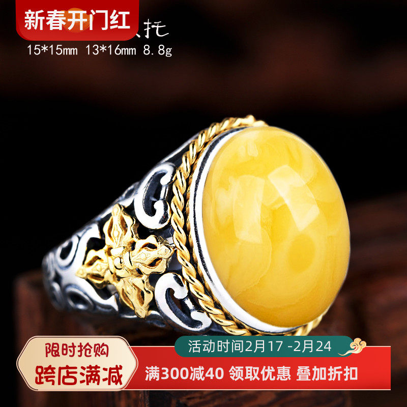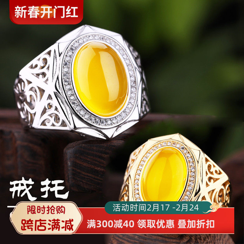 S925纯银戒指空托diy镶嵌蜜蜡绿松石南红翡翠戒托男款13*16 15*15