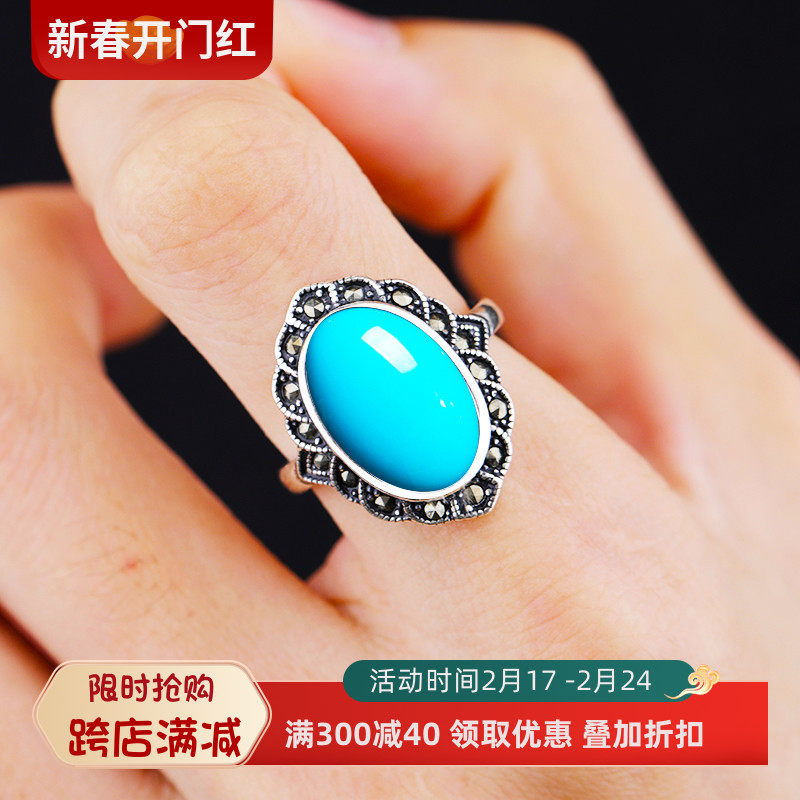 s925纯银小众设计绿松石镶嵌简约精致时尚指环女欧美戒指饰品