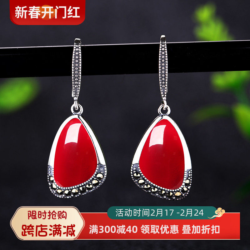 全新耳饰空托S925纯银耳环空托手工镶嵌蜜蜡绿松石红宝石银饰空托