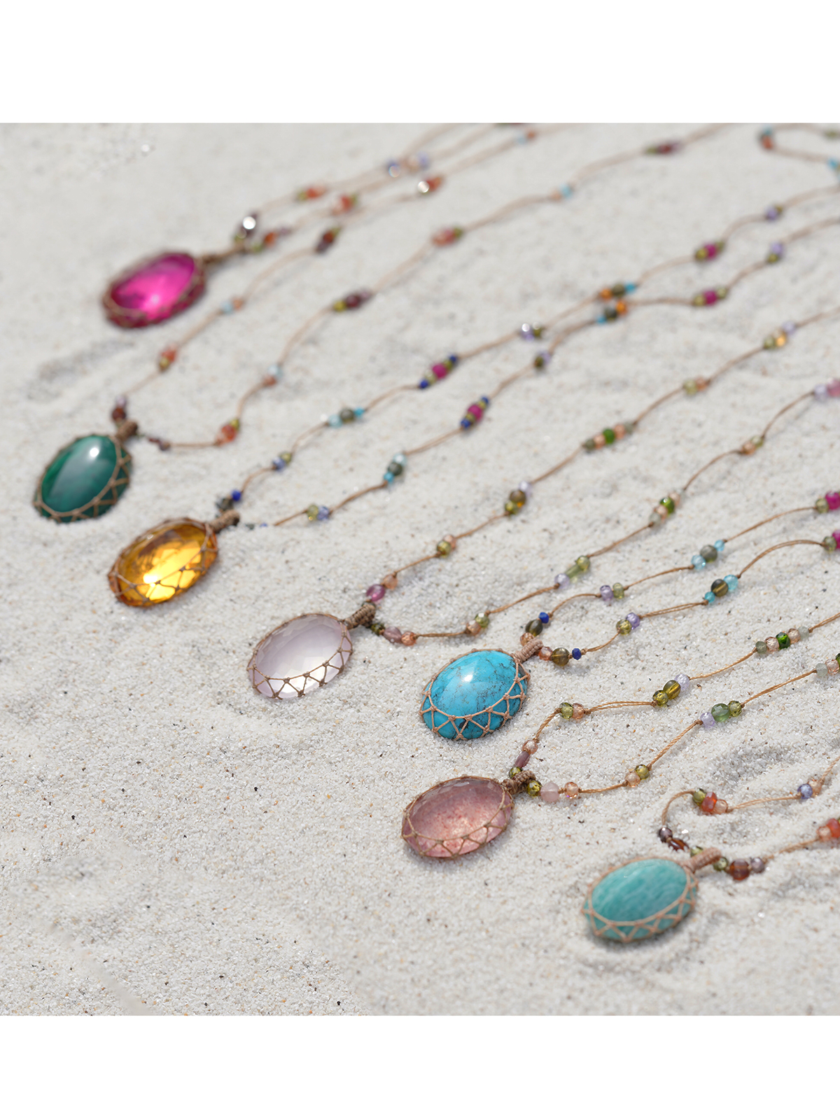 浪漫假日.天然草莓晶/绿松石与碧玺透辉石两款编绳藤曼项链