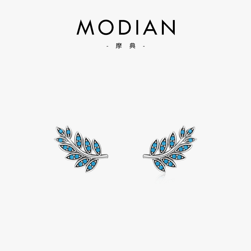MODIAN 925纯银复古绿松石耳钉女简约耳环小巧冷淡风韩国气质网红