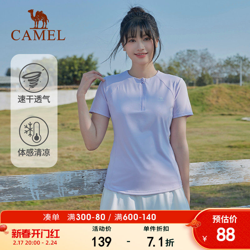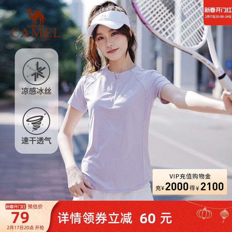 骆驼运动短袖女士T恤2023夏季网球服晨跑瑜伽健身冰丝凉感速干T恤