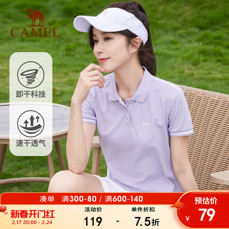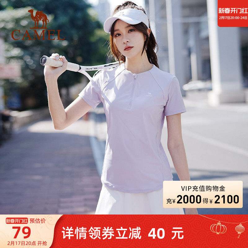 骆驼polo衫女运动T恤 夏季羽毛球网球服透气翻领半袖上衣速干短袖