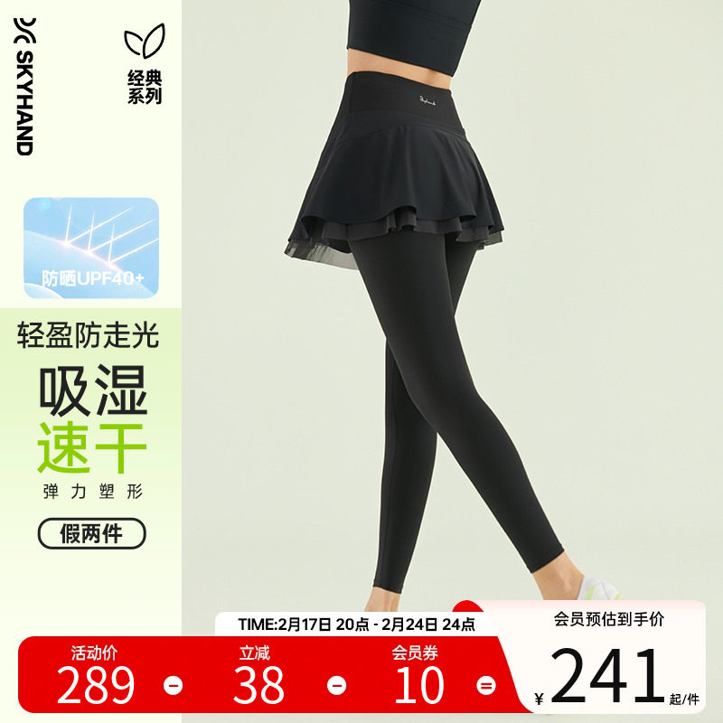 SKYHAND假两件运动裙女春秋健身瑜伽裙裤高腰半身裙羽毛球网球服