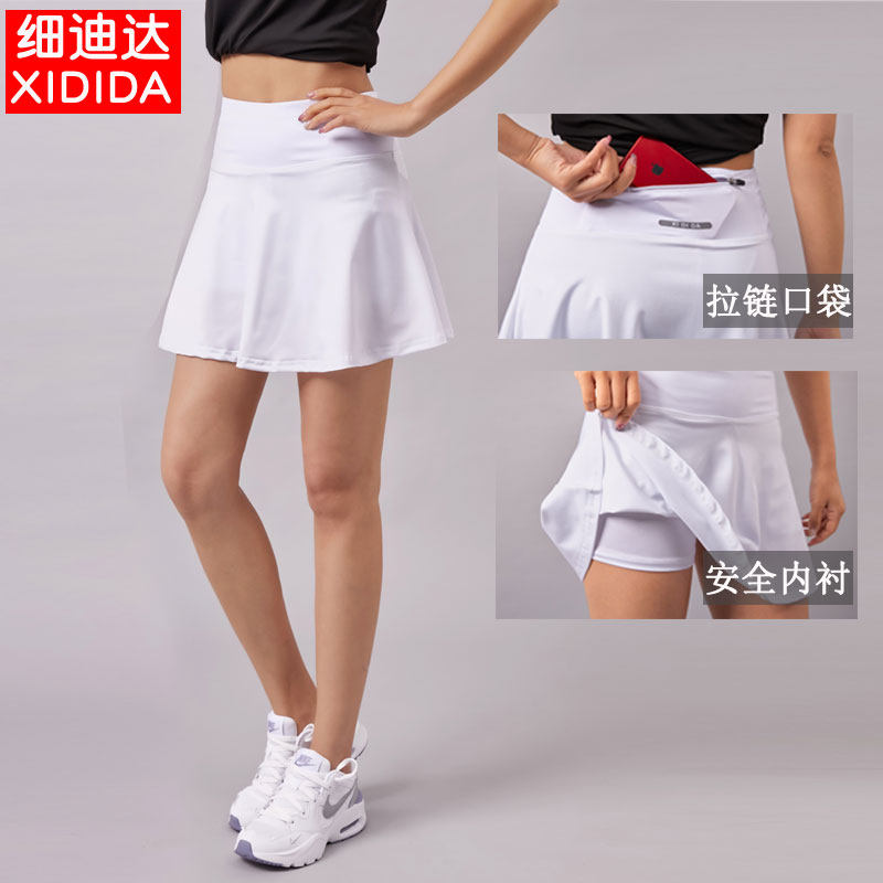 羽毛球网球速干运动裙裤女高腰跑步短裙健身假两件马拉松半身白裙