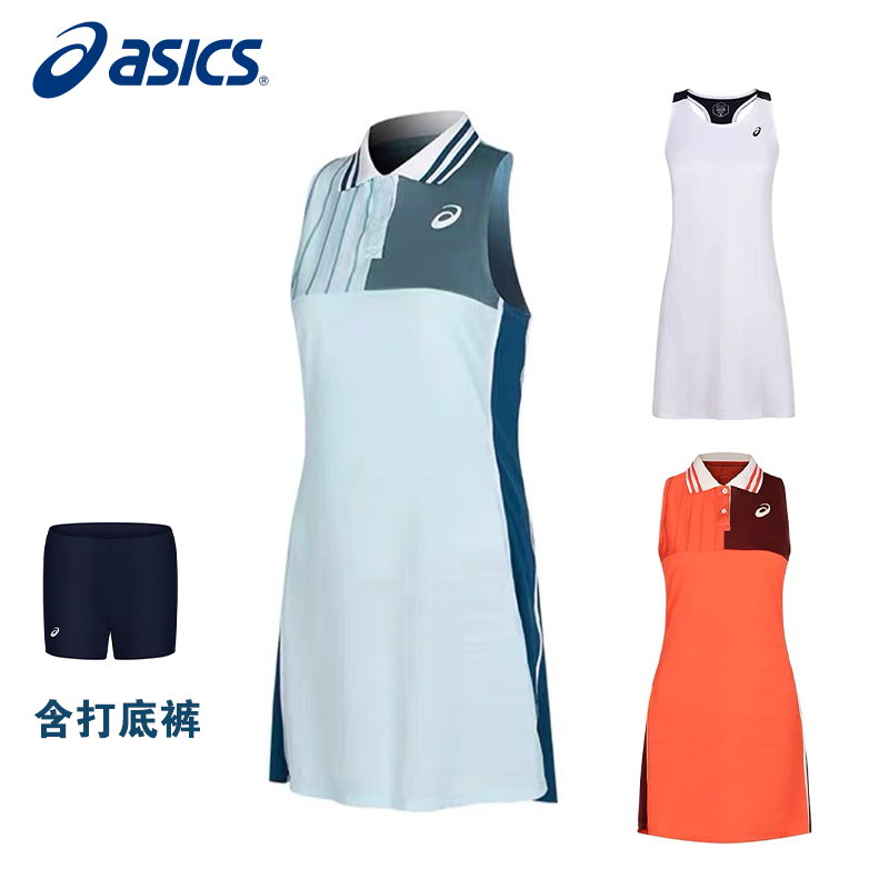 ASICS亚瑟士女子网球裙透气吸汗新款女式透气翻领网球连衣裙服