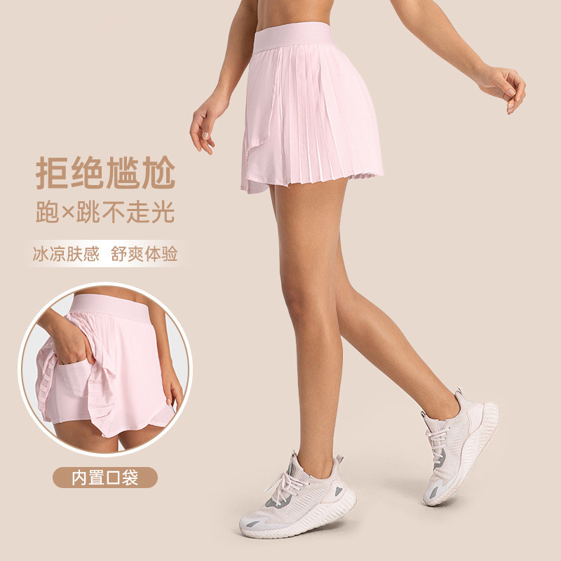 lu单运动百褶裙女夏假两件防走光网球裙速干透气口袋跑步健身短裙