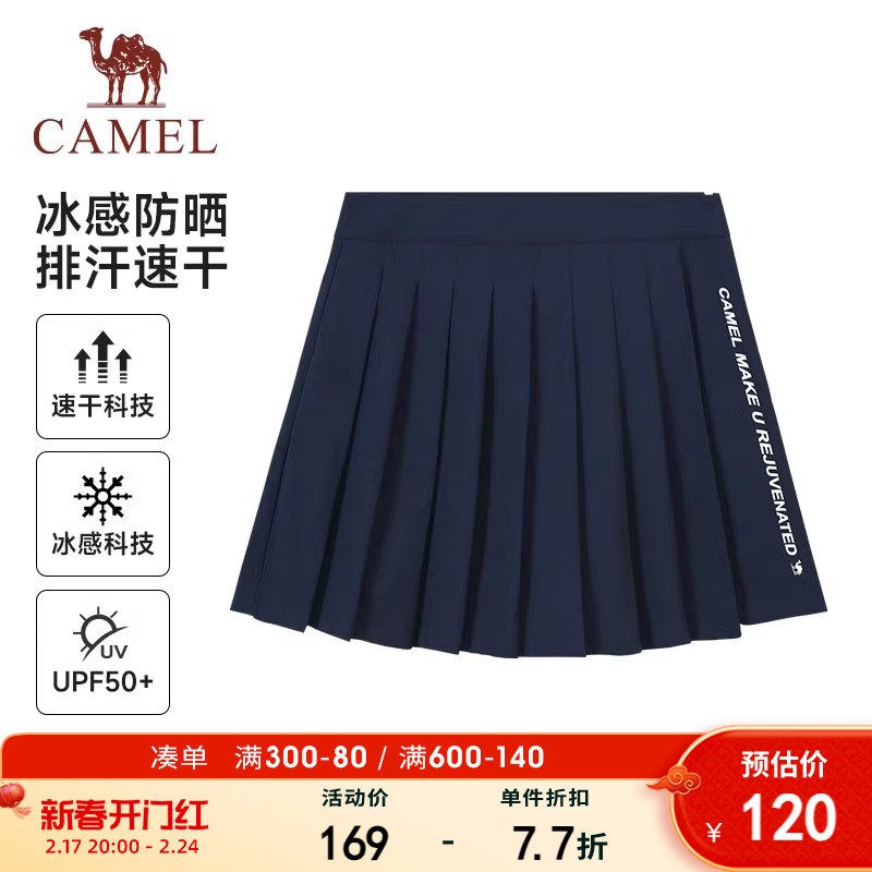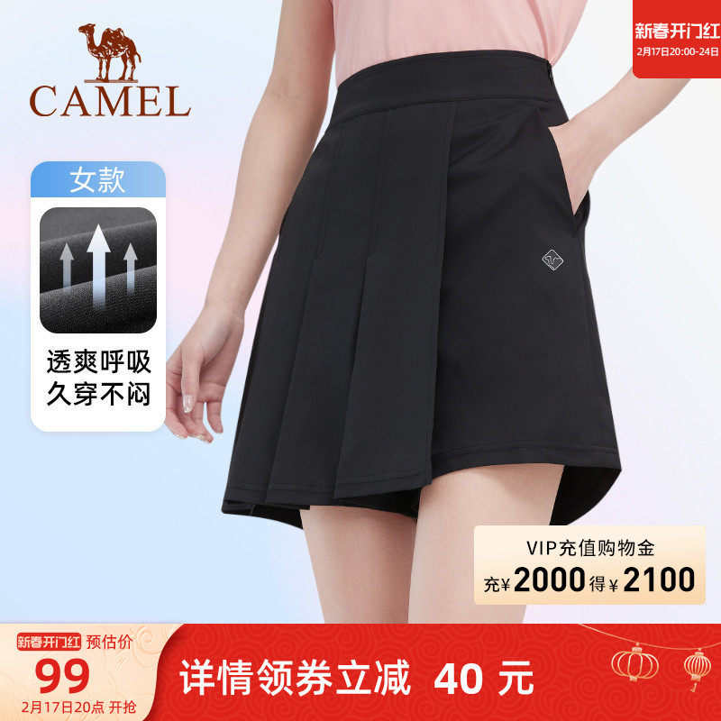 骆驼运动短裙女士2023夏季新款百褶半身裙网球休闲运动风A字裙