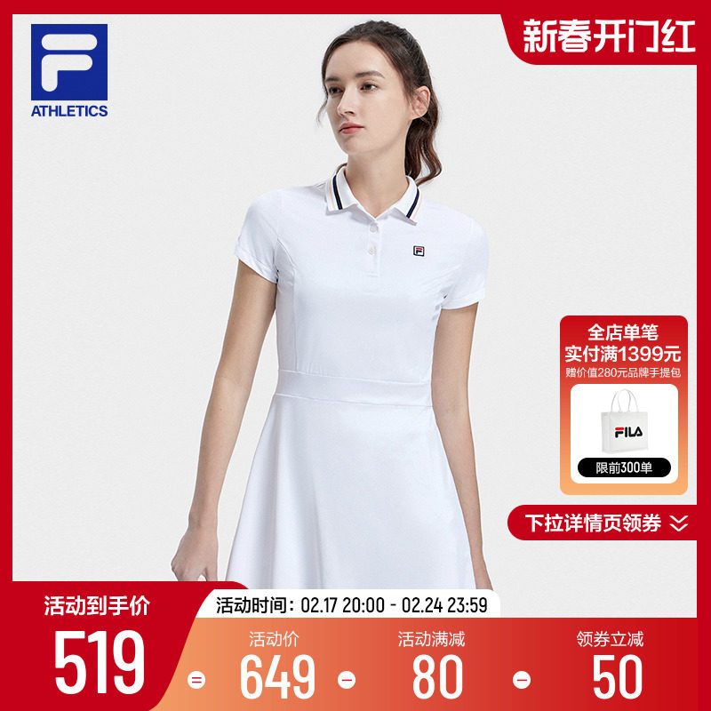 FILA 斐乐官方女士连衣裙2023夏季简约POLO领收腰网球运动裙