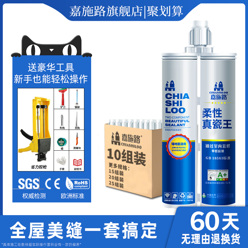 美缝剂地砖瓷砖专用家用防水防霉填充胶贵族银填缝剂胶枪双管工具