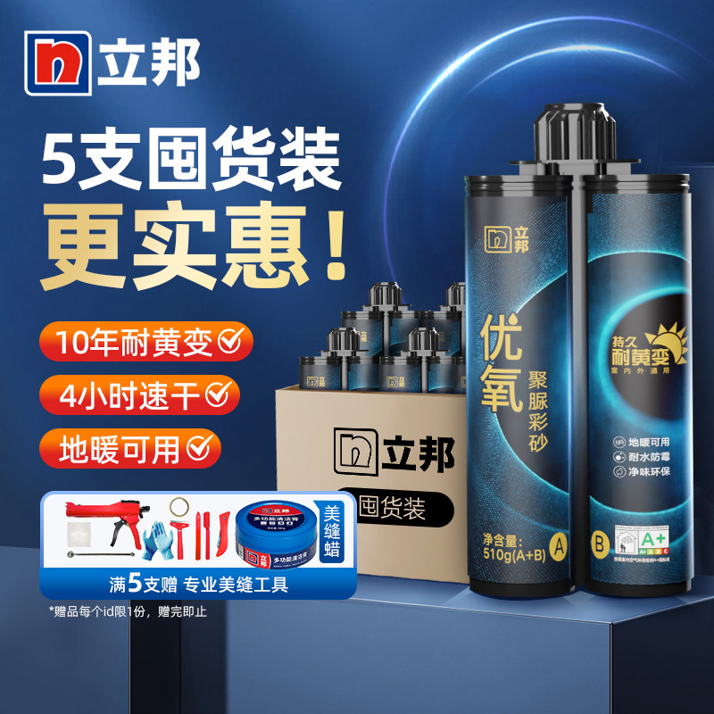 立邦优氧聚脲美缝剂室内外卫生间瓷砖防霉防水勾缝剂耐黄变5支装