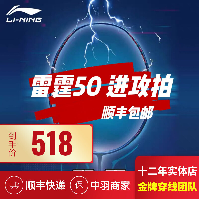 李宁羽毛球拍官方正品旗舰店雷霆小钢炮全碳素纤维超轻单双拍套装