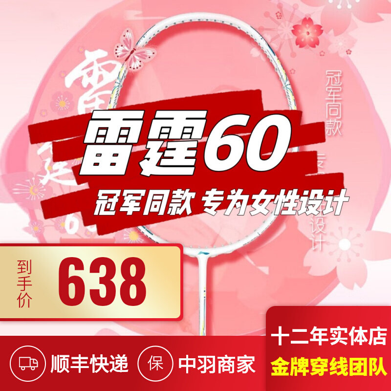 新款李宁羽毛球拍雷霆60专业职业均衡女5u碳纤维超轻单拍王适娴