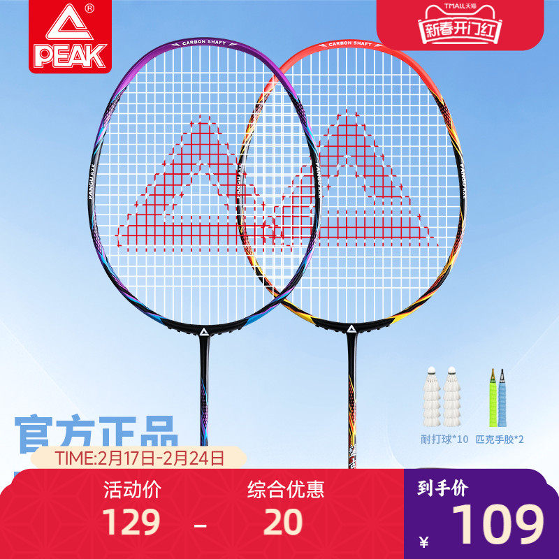 匹克羽毛球拍全碳素纤维比赛专用超轻套装成人学生初学训练单双拍