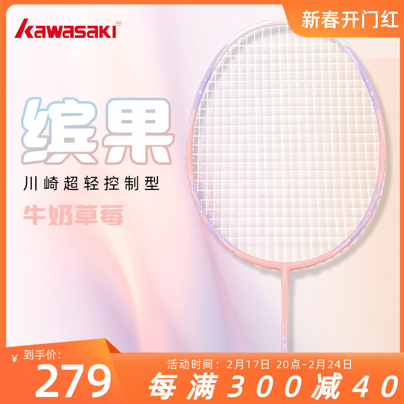 川崎羽毛球拍繁花似锦女生粉色礼盒装超轻专业全碳素纤维圣诞礼物
