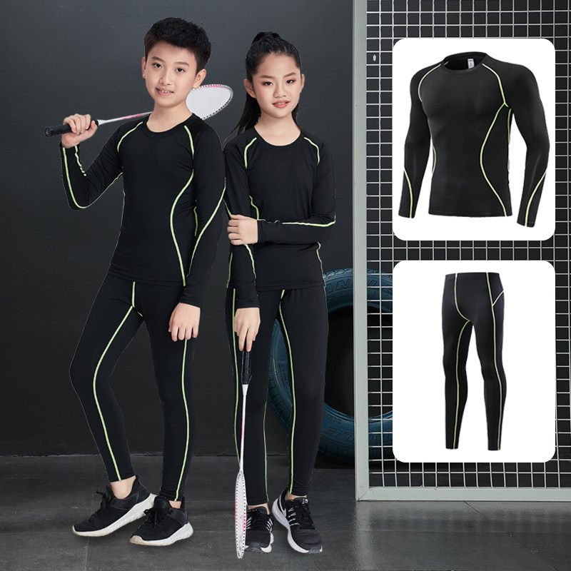 儿童羽毛球服弹力速干透气女童学生跑步跳绳长袖运动服套装秋冬季