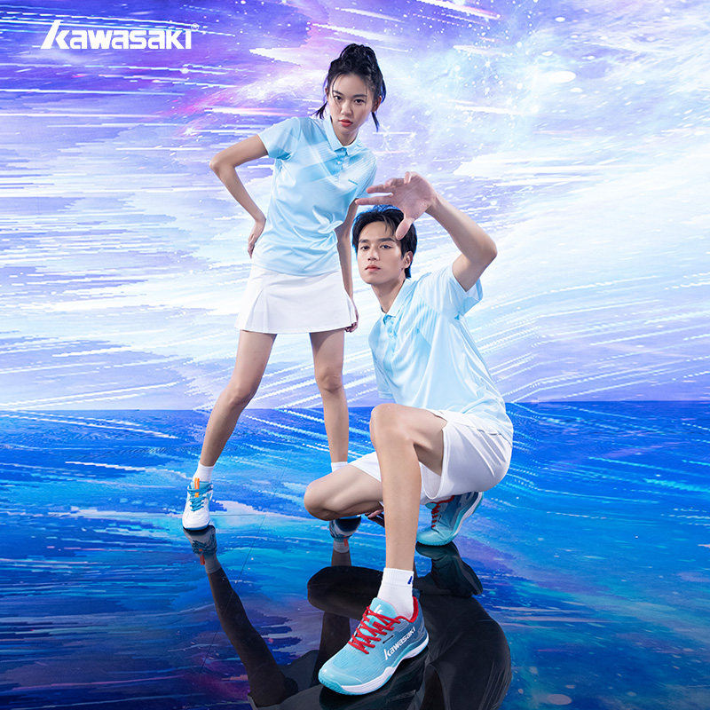 Kawasaki川崎2023春夏款专业羽毛球服运动翻领T恤Polo衫吸汗透气