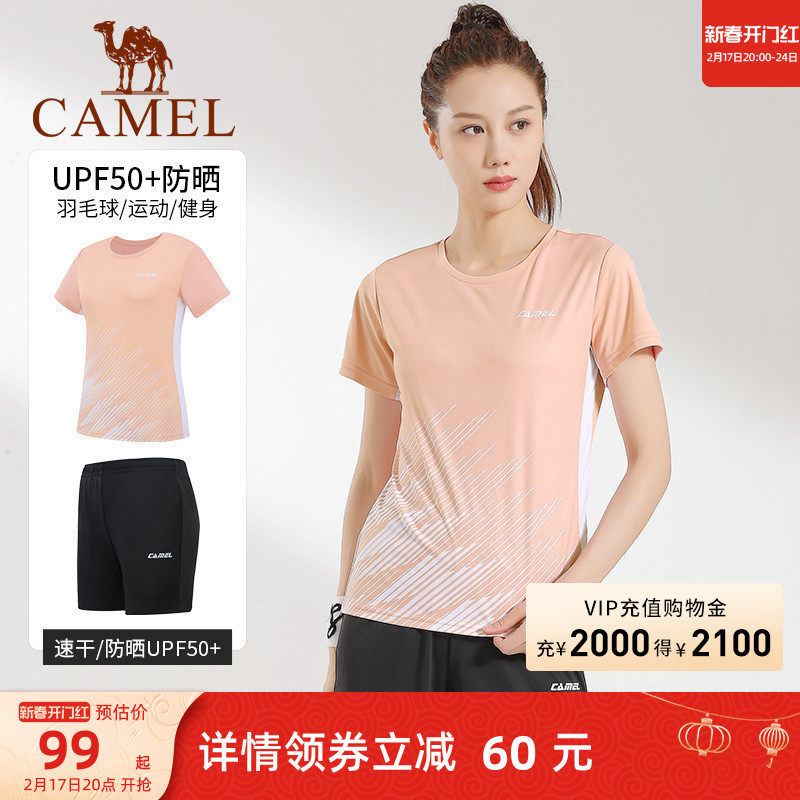 骆驼羽毛球服男款上衣速干运动服套装女T恤短裤跑步排球训练服夏