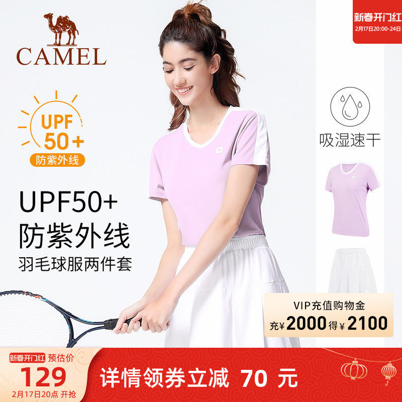 骆驼羽毛球服女套装训练服速干运动T恤短裤男网球服乒乓球上衣夏