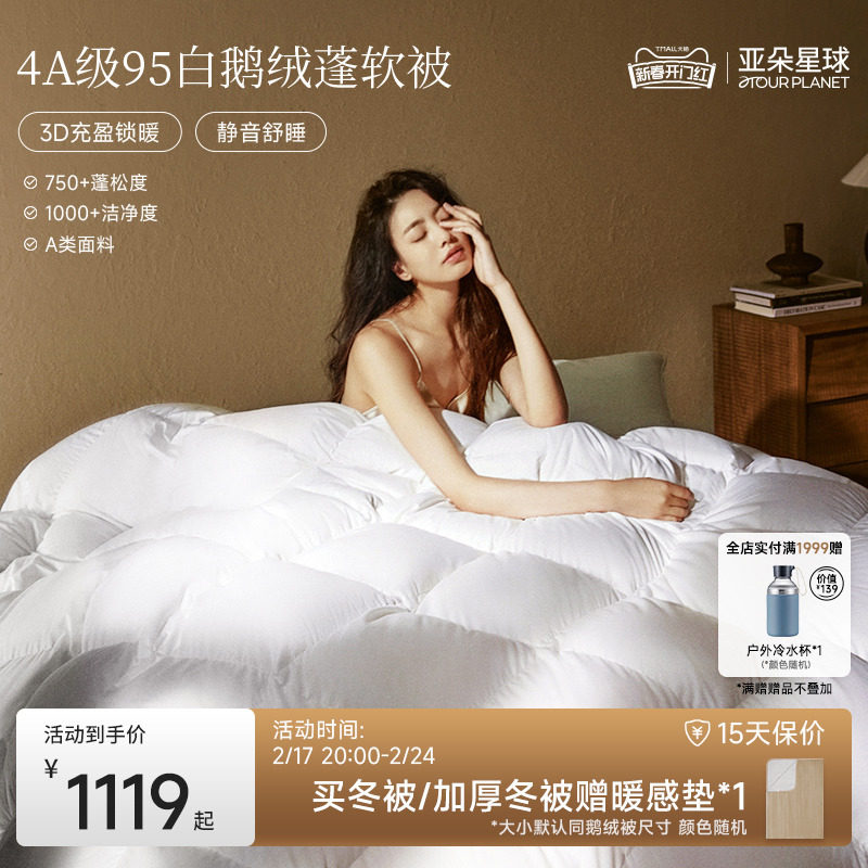 亚朵星球羽绒被4A级95白鹅绒被冬被春秋被静音加厚保暖棉被子被芯