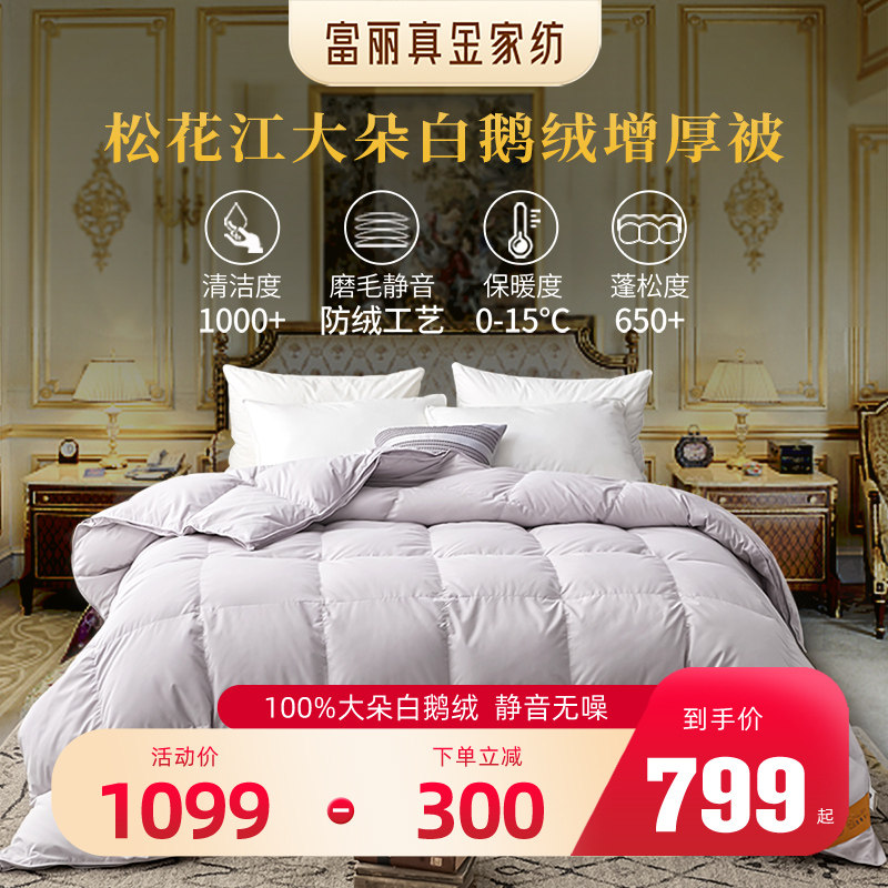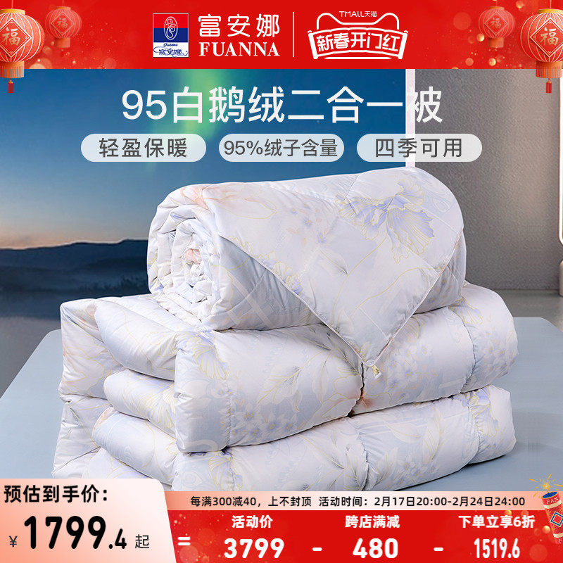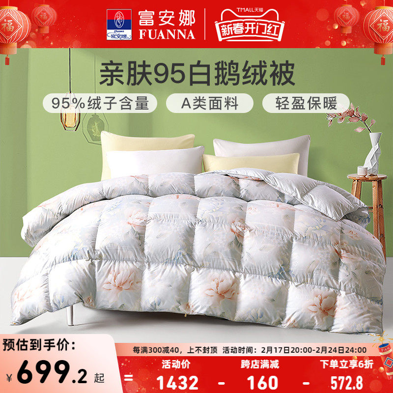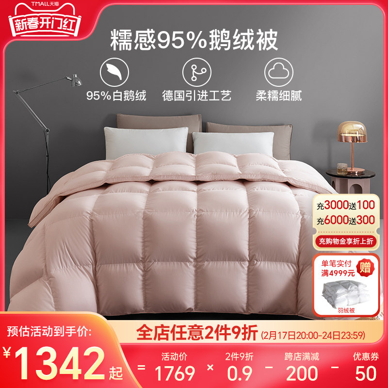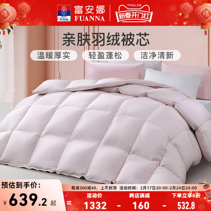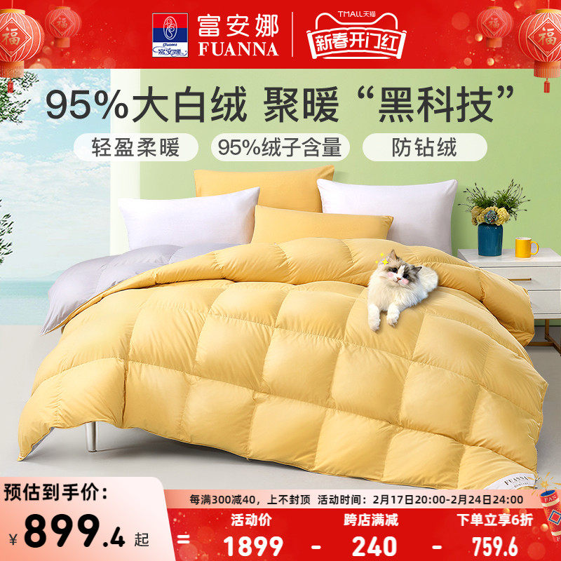 富安娜家纺羽绒被95白鹅绒保暖加厚被子冬被芯羽绒鹅绒被冬季被褥