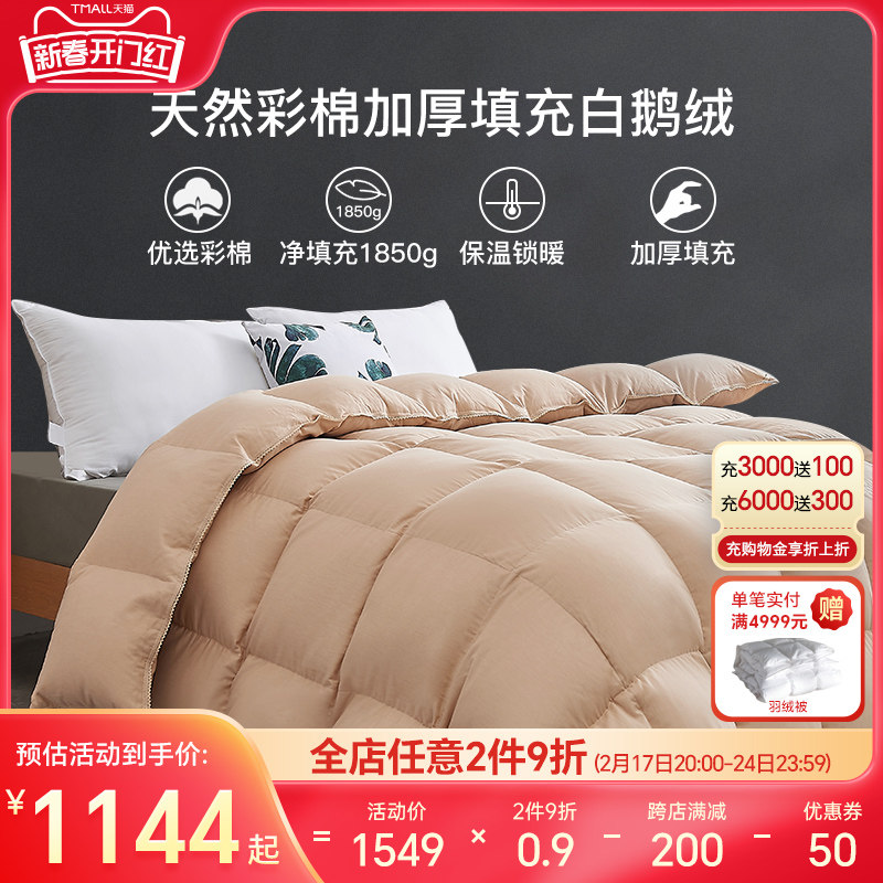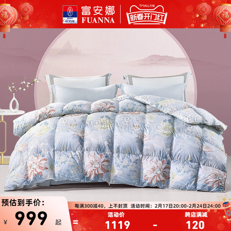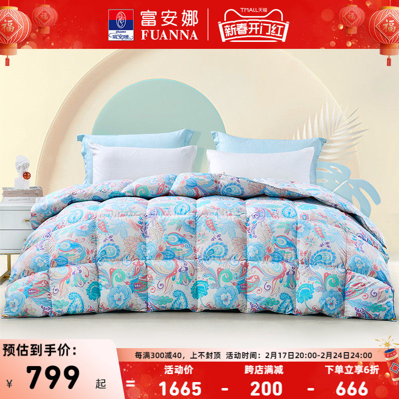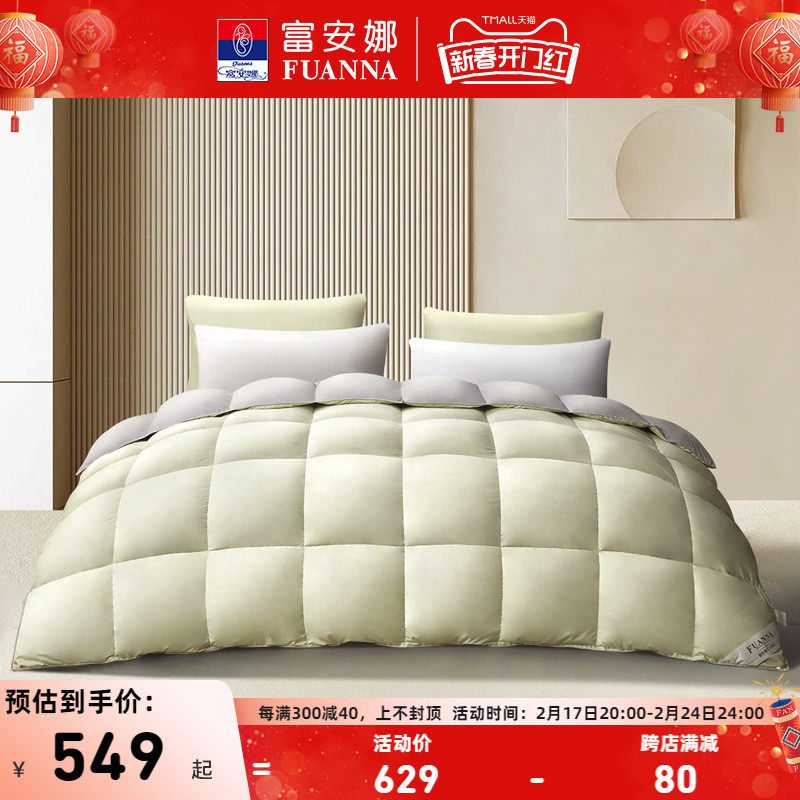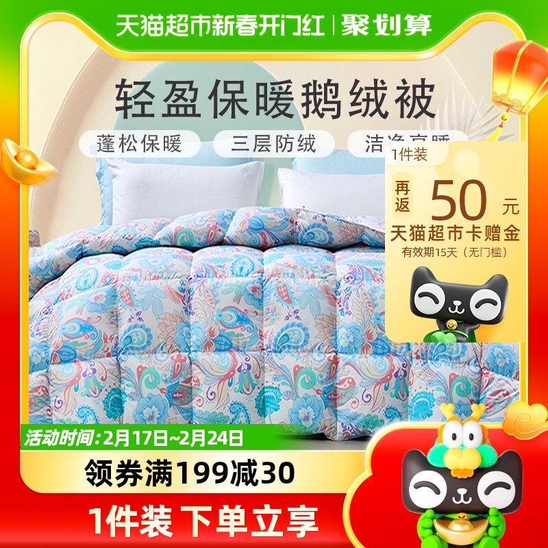 富安娜羽绒被白鹅绒四季被冬被子加厚被褥冬季保暖单人双人冬厚被