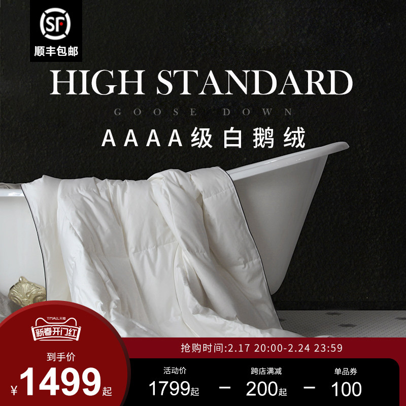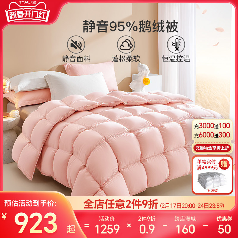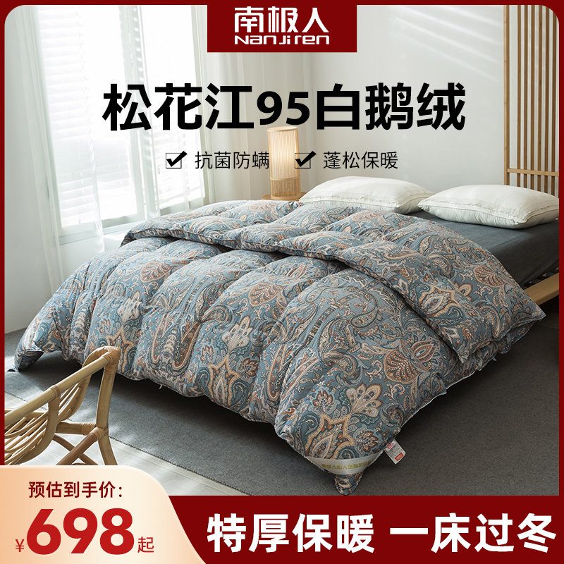 水星家纺羽绒被95白鹅绒被子被芯冬被加厚保暖抗菌春秋被白绒吹雪